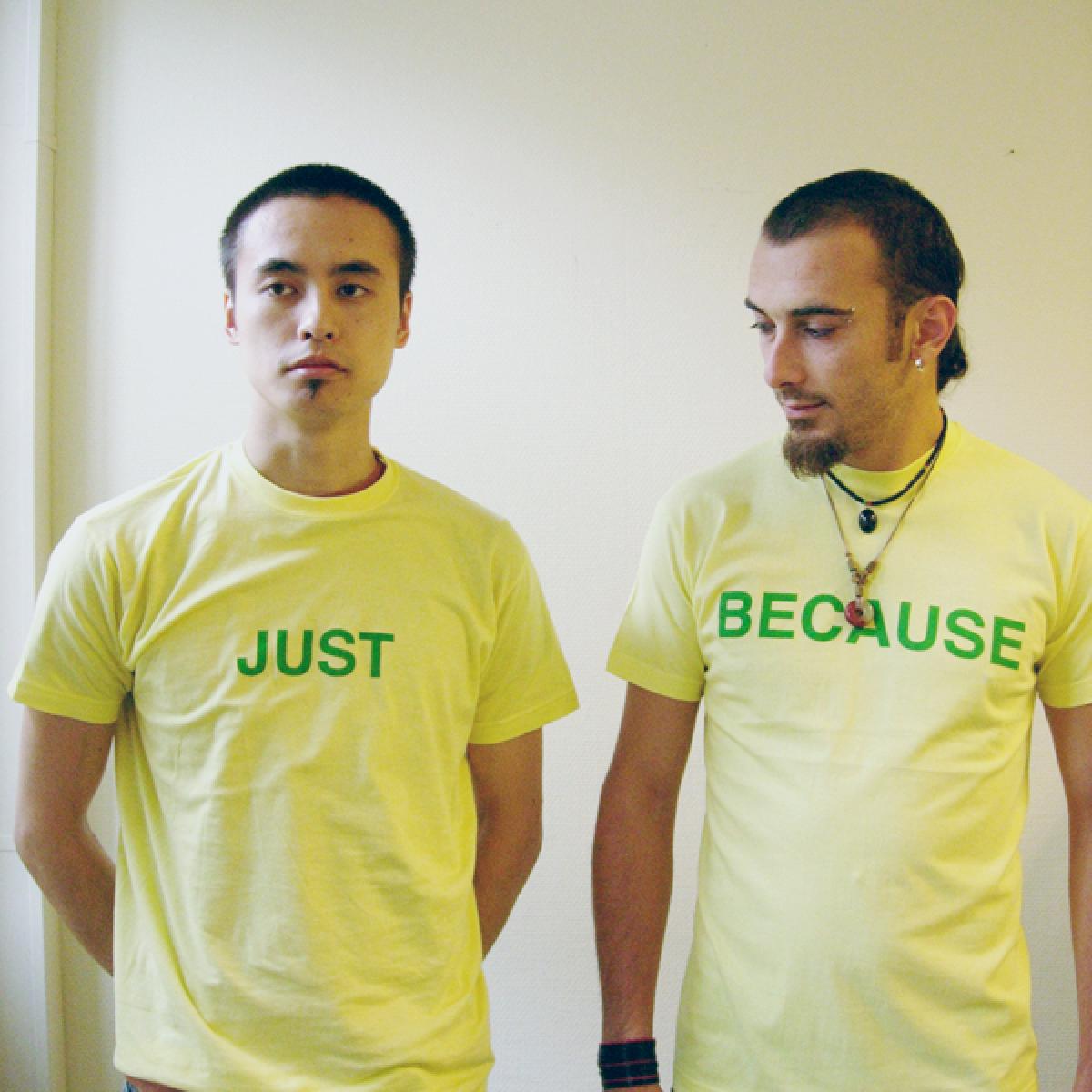 Met JUST BECAUSE laat Nishiko ons zien dat ontmoeting en toeval een grote rol spelen in ons leven. Als twee t-shirts samen komen ontstaat de combinatie van de woorden. Pas dan is het kunstwerk volgens de kunstenaar echt af.