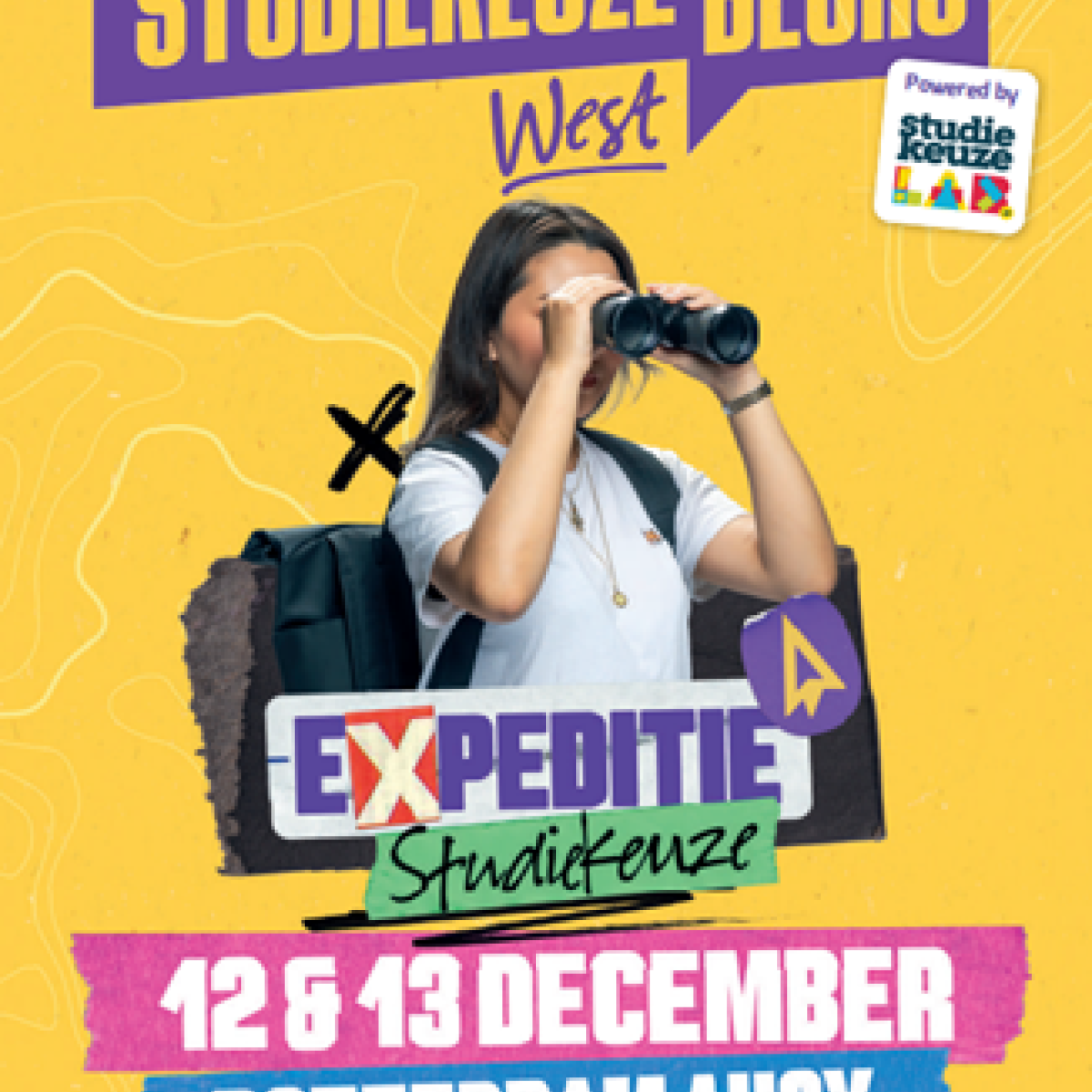 Ben jij klaar voor een spannende expeditie? Ontdek waar je goed in bent, waar je interesses liggen en welke studie het beste bij je past. Bezoek Studiekeuzebeurs West in Rotterdam Ahoy op vrijdag 12 of zaterdag 13 december en neem deel aan Expeditie Studiekeuze.