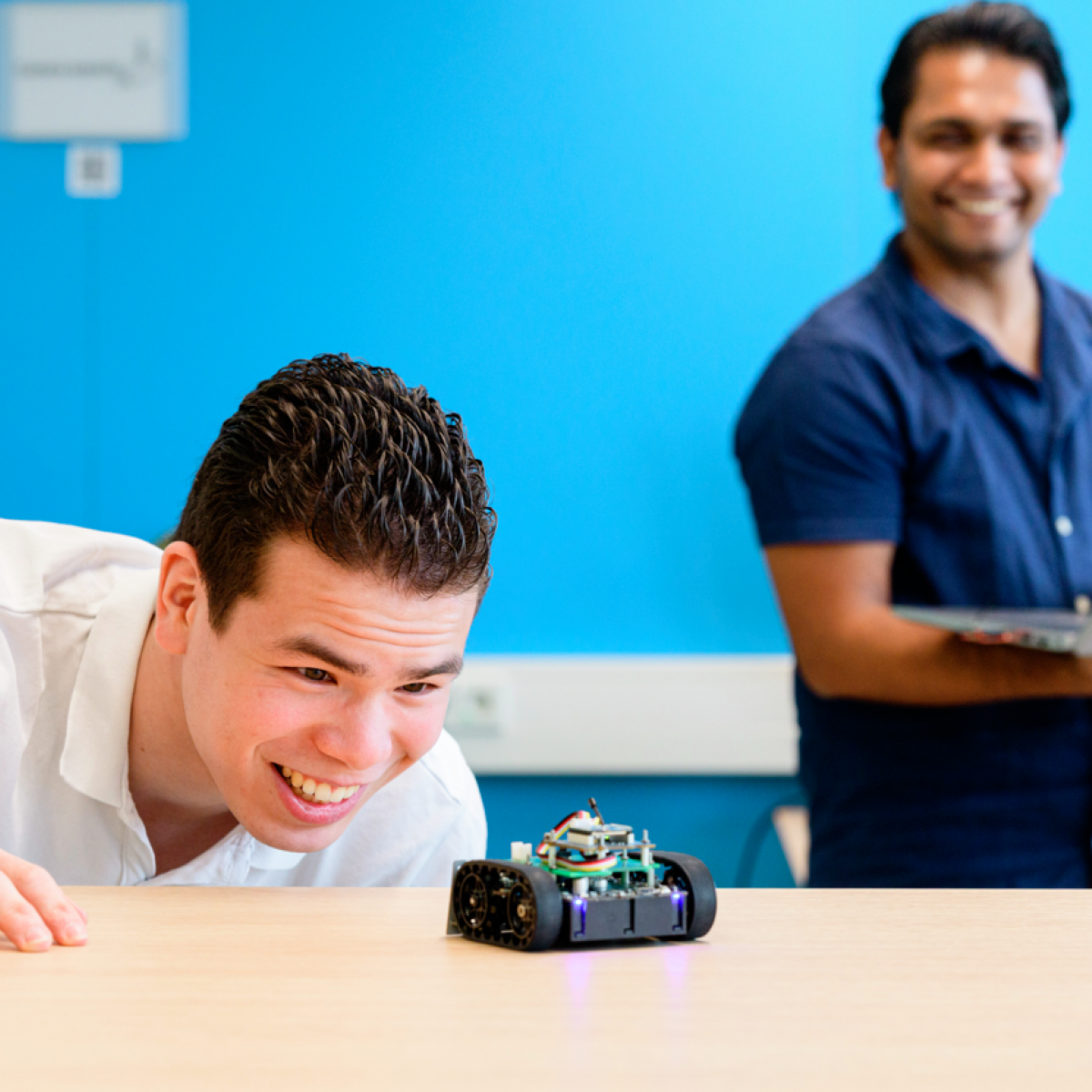Irritant dat de accu van een elektrische auto zo snel leeg is. De actieradius moét omhoog, vind je. Dat ga je leren bij de opleiding Elektrotechniek. En wil je leren hoe je data inzet om het leven voor iedereen makkelijker te maken? Kijk dan eens bij onze opleiding Applied Data Science & Artificial Intelligence.